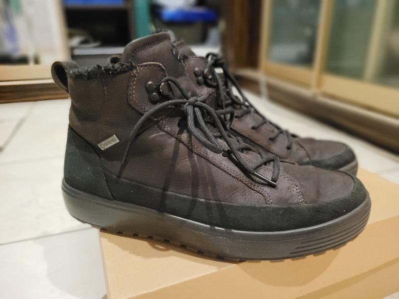 Мужские ботинки ЕCCO Soft 42р., в отличном состоянии из высококачественного нубука, мембрана GorTex. Подойдут на холодную осень, и на зиму. На ноге выглядят очень сильно, Очень удобные и современные, гибкая подошва, качество бренда, не пожалеете о своем выборе!