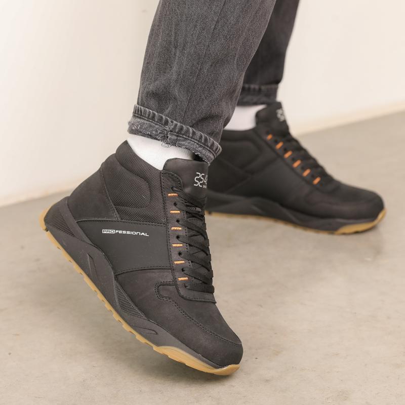 Ботинки мужские кожаные мех зимние черные кроссовки теплые 586466