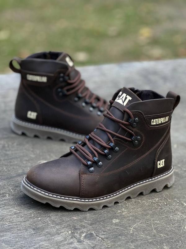 Зимові черевики caterpillar чоловічі з натуральної матової шкіри, мужские зимние ботинки н...