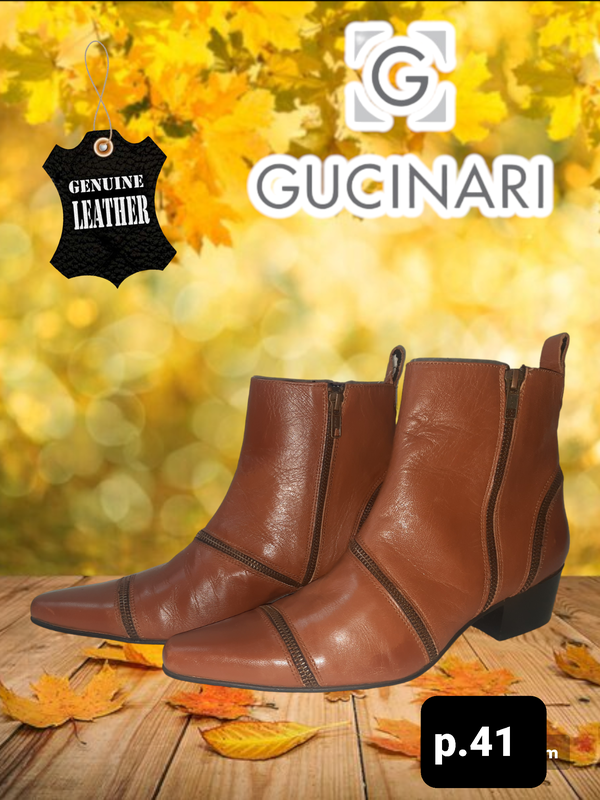 Gucinari предлагает широкий выбор стильных мужских туфель и ботинок в различных стилях и отделке, включая животные и яркие цвета, а также современные мужские броги, мужскую офисную обувь и мокасины. Независимо от того, хотите ли вы вы вычурные или элегантные, гламурные или сдержанные мужские туфли, Gucinari – это то место, где стоит искать. Обязательно ознакомьтесь с ассортиментом «фанки», чтобы найти самую необычную и яркую обувь. Д.стельки 29 см (узкий мысок),шир стопы 9 см Высота 18 см,h.,ковбойских каблуков 5 см О.щеколотки 30.5 см О.верза 29 см Цвет-коричневый. В 16