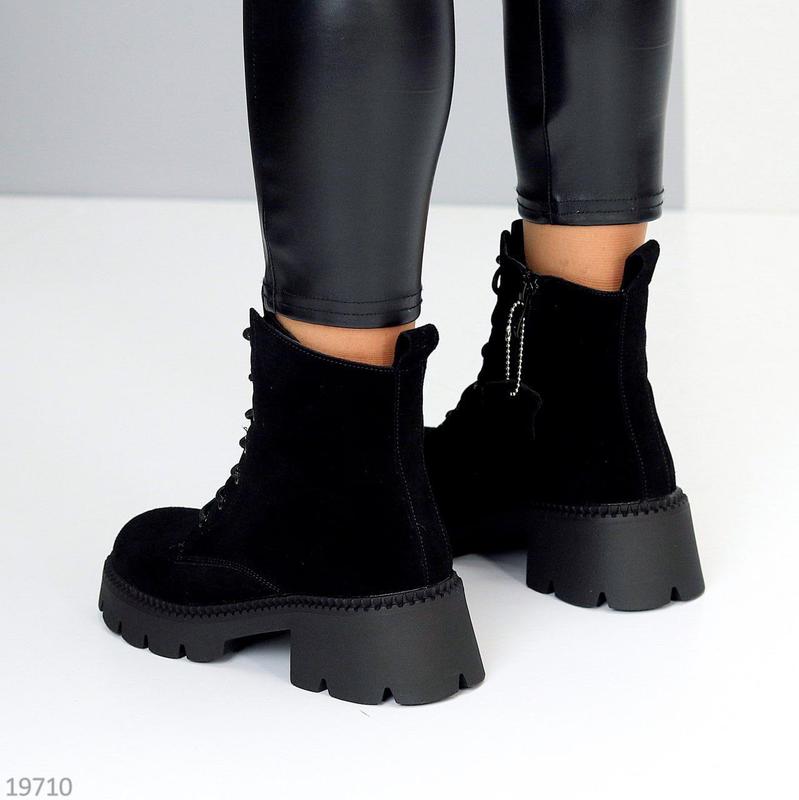 Размеры 36-41 Черевики "Carat" Материал - НАТУР. ЗАМША Внутри - Экомех Сезон - Зима Цвет - Черный Высота от пятки - 11 см Подошва - 5,5см/3см Производитель - Фабричный Китай На среднюю стопу Размер в размер 36-23,5 37-24 38-24,5 39-25-25,5 40-26 41-26,5