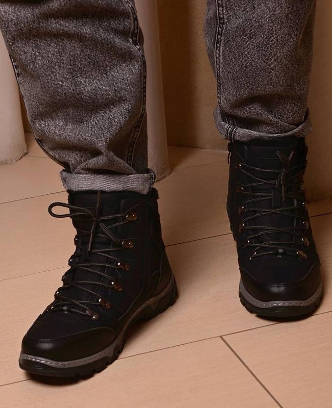 Ботинки мужские Качественный пошив Материал верха экокожа Подкладка искусственный мех Подъем регулируется шнуровкой Прошитые Высота подошвы спереди 2 см сзади 3 см Высота задника от подошвы 9 см Замеры 41-26,5 см 42-27 см 45-28,5 см