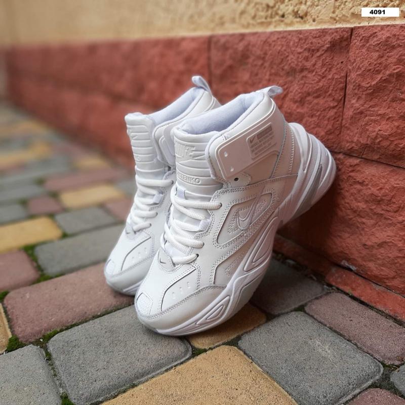 ❄️зима Nike M2K Tekno високі Білі з сірим виробництво В'єтнам ціна 2100 грн Розміри 36-41 36й(23см), 37й(23,5см), 38й(24см), 39й(24,5см), 40й(25,5см), 41й(26см) Верх шкіра , всередині хутро цигейка, підошва піна.