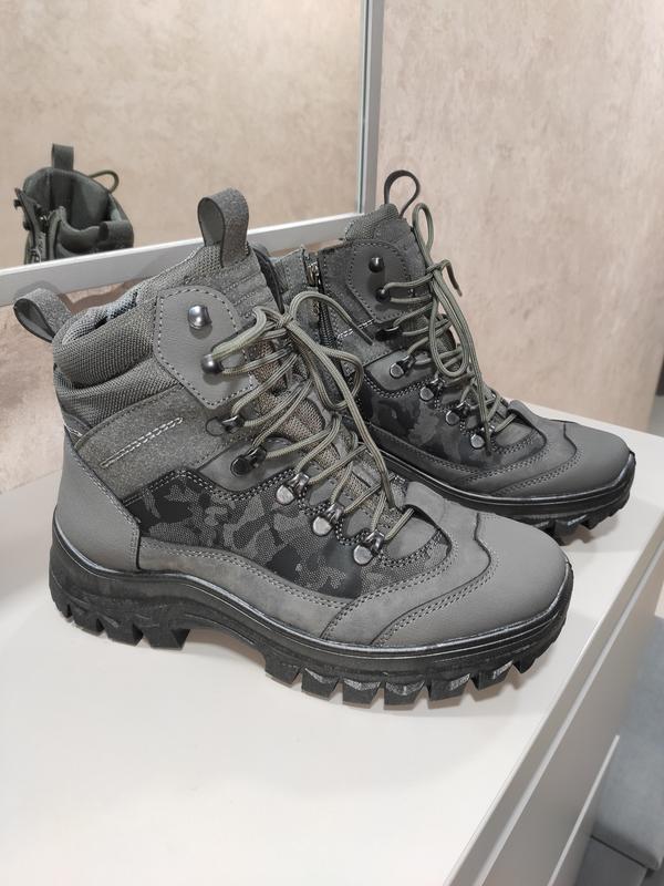 Ботинки мужские зима На змейке и шнурках Цвет серый, хаки Лёгкие и удобные Размер 41, 42, 43, 45