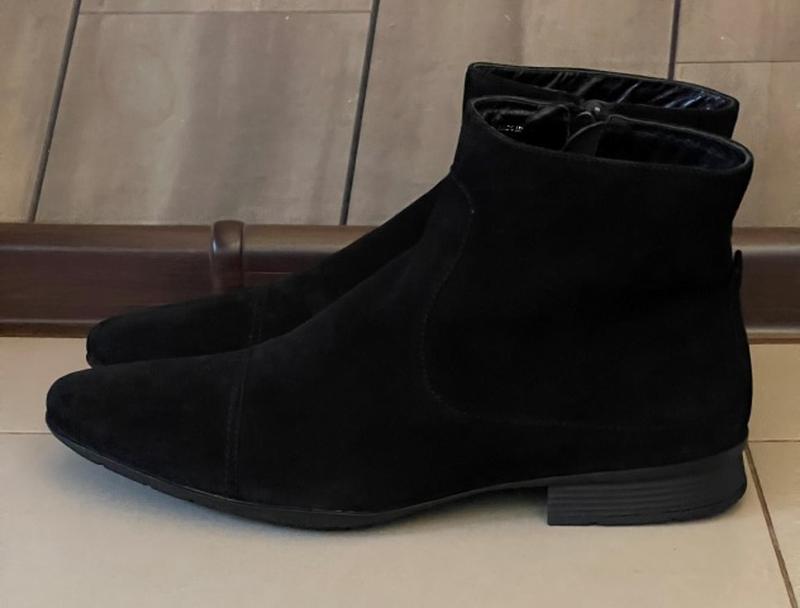 Зимові черевики з натуральної замші на штучному утеплювачі чорного кольору. Модель застібається на бічну змійку та має круглий, злегка звужений носок. Бренд Carlo Pazolini. Розмір 43 (фото No8;9). Довжина устілки 29 см. (фото No9). Зважайте, злегка звужений носок і те, що Ваша стопа має бути трохи меншою за устілки. Підійдуть на вузьку/середню ногу. Характеристики: - Верх: натуральна замша - Всередині: натуральна шкіра/штучний утеплювач - Підошва: гума - Колір: чорний. Стан новий, без коробки. Ласкаво просимо до нашого магазину. Відомі бренди, чудова якість — доступні ціни. Умови доставки: - До оформлення замовлення уточнюйте про наявність виробу. За оформленим замовленням посилка вирушає після 100% або часткової передоплати! Повороту/обміна немає; - Без оформлення замовлення посилка відправляється Новою поштою після 100% передоплати на карту Приват або накладеним платежом за часткової передоплати 150. У разі відмови від посилки аванс не повертається, а йде на поштові витрати. Поштові витрати за рахунок покупця; - Всі посилки обов'язково переглядайте в відділеннях пошти! Якщо виникнуть питання стану (наяву дефектів, не зазначених у оголошенні), складайте акт у присутності працівника пошти та обов'язково відправте нам з поштового відділення в листування з Шафою фото дефекту. Якщо Виометрислали посилку — це буде підтвердженням того, що Вам усе підійшло, повернення/обміна немає! Щоб уникнути неприємних ситуацій, чітко дотримуйтесь наших правил!