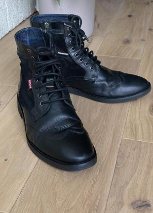 Продам круті чоловічі черевики, відомого якісного бренду Levi’s. Виконані із комбінованих матеріалів шкіри і замші. З якісними шнурками з металевими кінчиками. З внутрішнього боку оформлений м'якою джинсовою тканиною. Всі деталі дуже круті якісні та продумані. Розмір 43, 26,5 см устілка. Дуже гарний стан, на носі є маленькі сліди вживання.