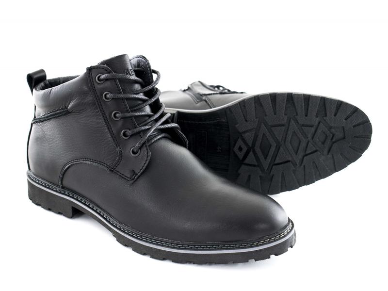 Мужские кожаные ботинки утепленные плотной шерстью. Обувь в классическом стиле зимняя, на шнуровке и со змейкой. Украина, кожа, черный, зима, шерсть