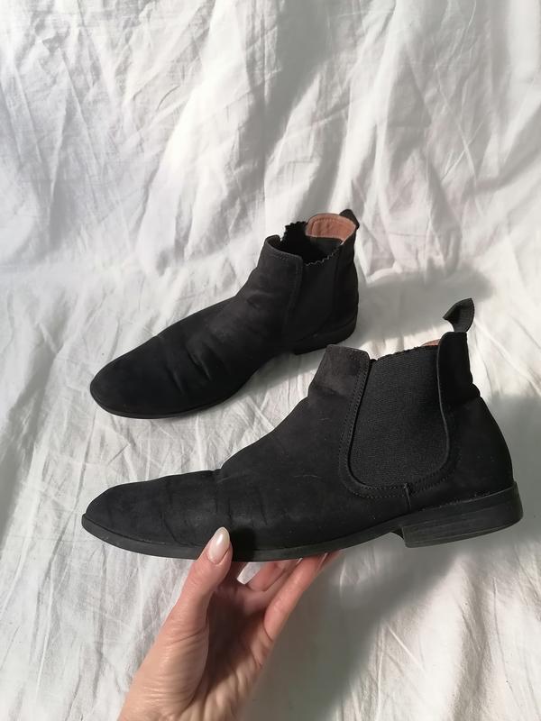 Чоловічі челсі з текстилю під замш. Є тріщинки на згині (фото 9), заломи і вм'ятини на носках і п' ятках (фото 6, 7, 8). Написаний розмір 44. Довжина устілки від краю до краю 30 см. Висота черевика 11 см Півобхват зверху 12-15 см (резинка). На всі питання з радістю відповім, при необхідності надішлю додаткові фото та заміри. ✅Підписуйтесь на сторінку, регулярно додаю обновочки. ✅Ставте ❤️, щоб не загубити річ, яка сподобалась. ✅Постійним клієнтам знижки 🤗