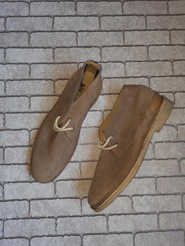 Стильні замшеві дезерти DC Натуральна замша зовні, всередені -шкіра та текстиль. Красива да дуже зручна модель р-р 45 Нові. куплялись в Іспанії на останньому фото-є невеличкий дефект, яки й не впливає ні на зовнішній вигляд ні на процес носки-невеличка плямка.Враховано в ціну.