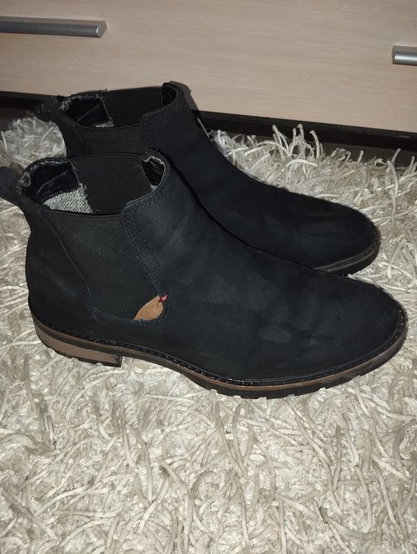 Мужские ботинки,по бокам резинки,верх текстиль под замшу отличного качества,стелька 27 см,написан 41 р, ширина стопы 10,5 см.Внутри облезла прес кожа,ее видно когда присмотреться 6 фото.