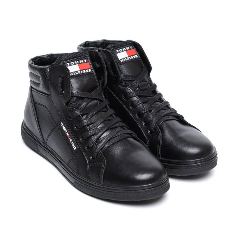 Зимові шкіряні ботинки tommy hilfiger чорні