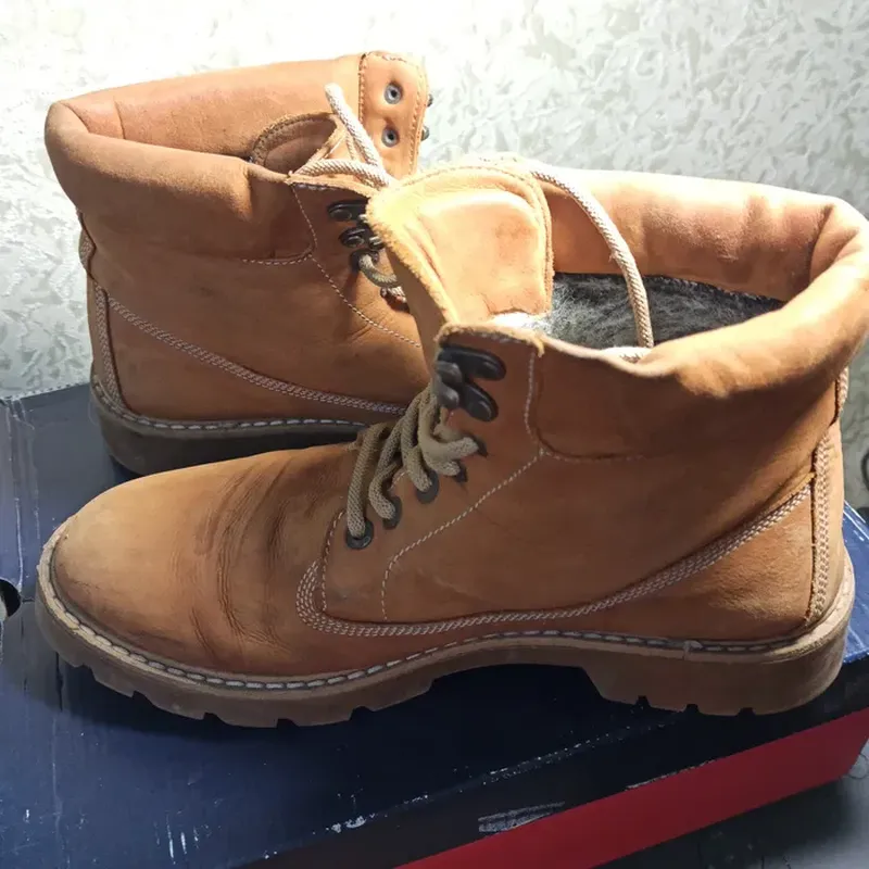 Продам кожаные зимние ботинки полномерного 41 размера. Очень теплые, не промокают. Купили в мужском отделе! Дочка относила 1 сезон, дальше нога у нее возросла. Состояние отлично. Длина стельки 26,5 см. Находимся на Борщагке, район ТЦ Апрель. Самовозовиватель желательно.