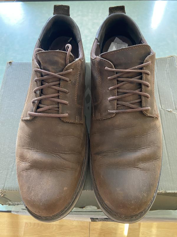 Черевики чоловічі Timberland 45розміру , коричневі , на високій підошві, відкриті. Матеріал: верх- нубук, підкладка- текстиль, підошва -гума. Фіксуються шнурками.