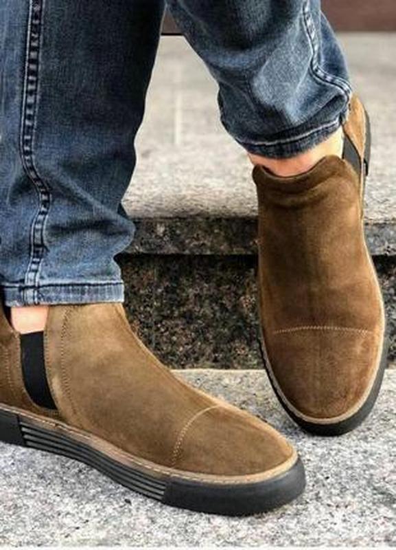 Очень стильные ботинки на утеплении. Верх - нат.замш высшего качества. Подклад - обувный флис (Деми). Подошва - полиуретан с тунитом, полимерные материалы стойкие к износу при эксплуатации. Цвет - горчица / оливка. Размер - 42, 43, Все комплектующие Италия. Обувь класса люкс . Коробки нет.
