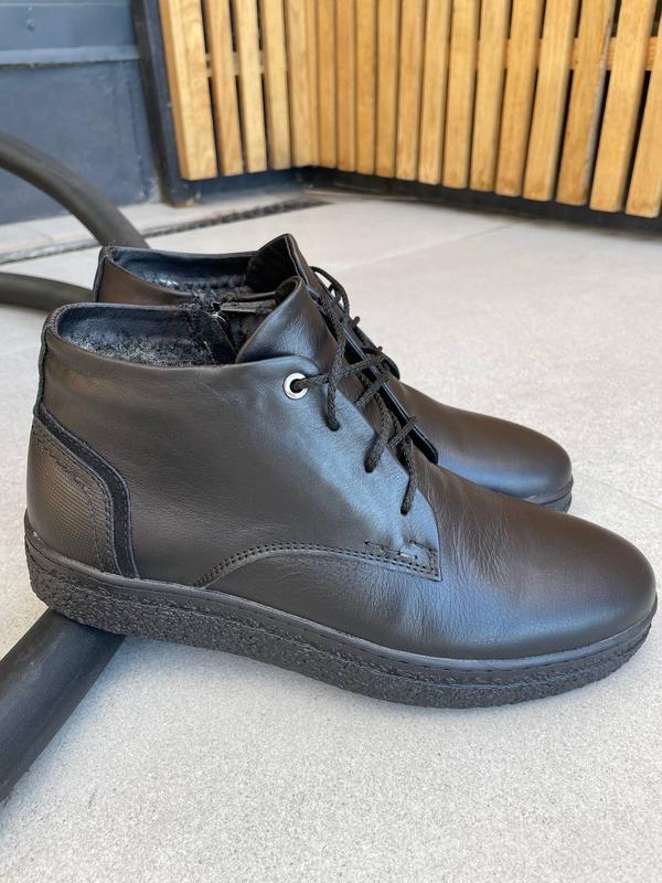 Черевики шкіряні Сезон: зима Розміри: 40-45 Колір: чорний Матеріал верху: натуральна шкіра Утеплювач: напівшерсть Матеріал підошви: поліуретан Висота без підошви: 9,5см Висота підошви: 3-3,5см Виробник: 🇺🇦🇺🇦🇺🇦 В наявності: 40 40 41 41 44 40-26,5см 41-27см Ціна 2500
