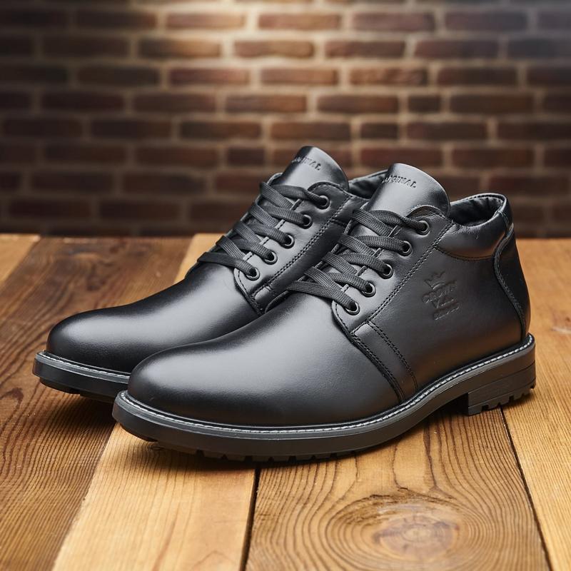 Мужские классические черные ботинки на теплом меху
