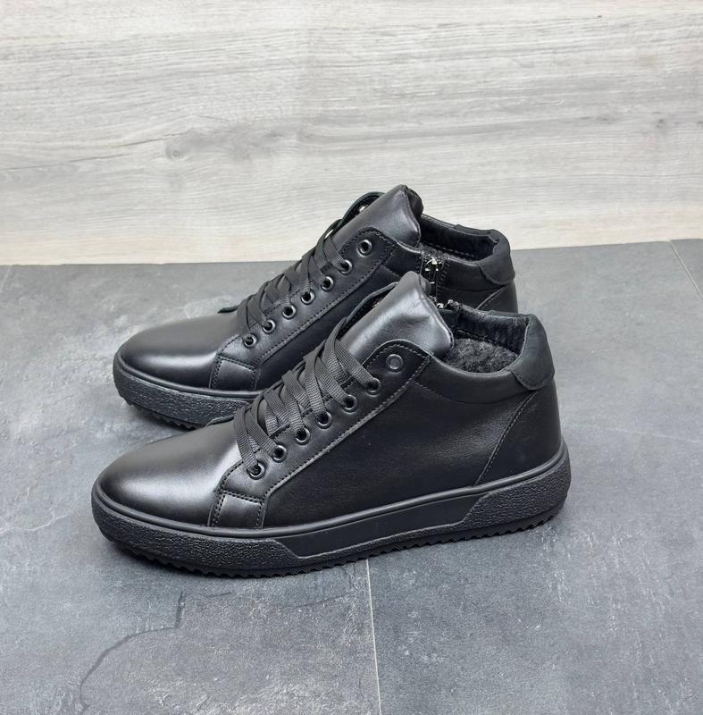 Код: 62 ч.т Сезон: зима Тип: черевики/кеди Пол: мужской Цвет черный Верх: натуральная кожа Середина: натуральная шерсть (набивная) Подошва: термополиуретан Стиль: повседневный Размеры: 40,41,42,43,44,45. 40-(26 см) 41-(27 см) 42-(28 см) 43-(28,5 см) 44-(29 см) 45-(30 см)
