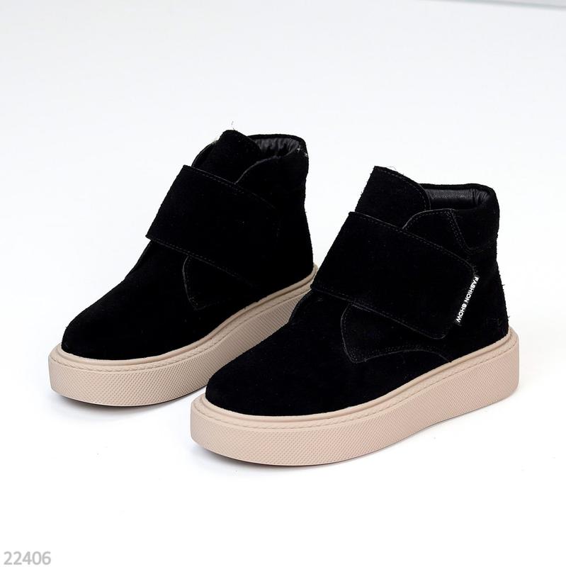 Ботинки на липучке Размер: 36 Материал: натур замша Внутри: натур мех Сезон: зима Цвет: черный/моко Высота от пятки: 9,5см Подошва: 4см/3см На среднюю стопу Размер в размер 36-23,5 см не подобрал размер