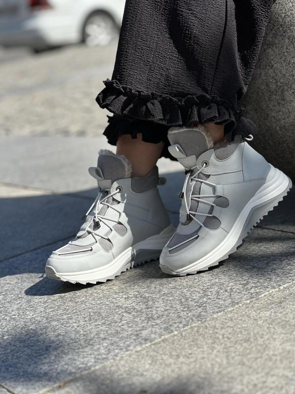 Натуральная кожа, супер теплые в удобные, шнуровку не надо, шнуровка резиновая и хорошо тянется. Есть 3 цвета