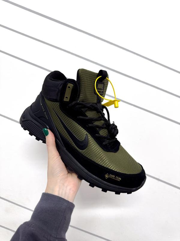 Nike Rivah Gore-Tex Fur Haki Размеры: 41-46 Материал: Замша, водостойкий текстиль Утеплитель: мех, до -21 градусов Подошва : Пена, резина