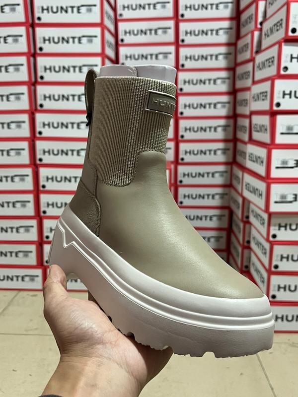 Черевики Explorer Chelsea Flatform Boot Explorer Chelsea Flatform нового силуету від Hunter, створені на круглий рік, виготовлені з водостійкого верху з переробленого нейлону та шкіри. Частково перероблена підошва з EVA гарантує, що черевик надзвичайно легкий. Доставка від 2 тижнів. Оригінал ‼️