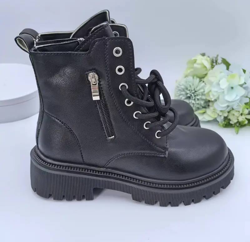 Женские зимние ботинки с плюшевой подкладкой и боковой молнией. Удобная широкая подошва на платформе. Новые. Размер 37, 38, стелька 24,5см (маломерные), цвет черный, материал искусственная кожа ПУ, сезон осень-зима.