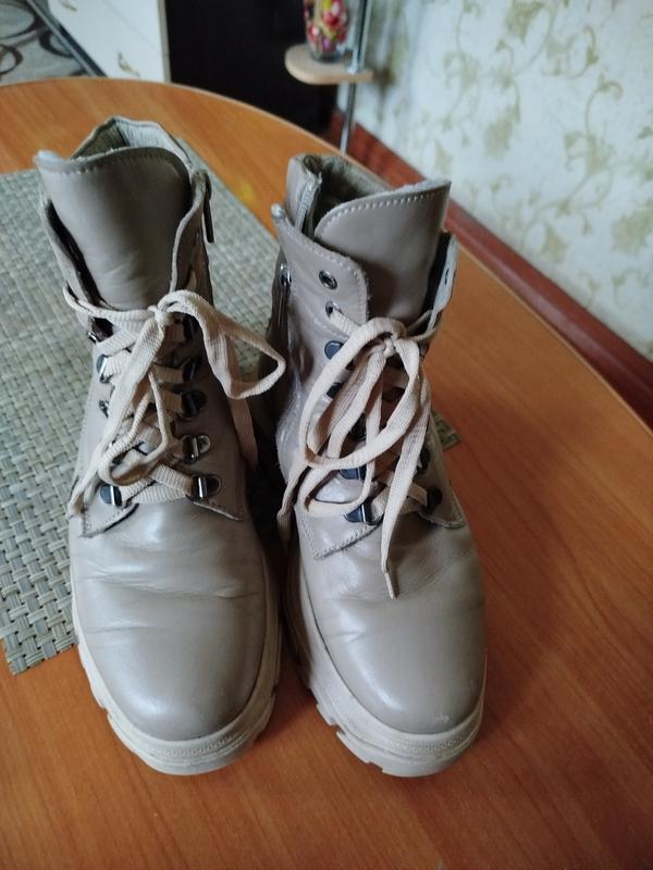 Ботинки жіночі із натуральної шкіри фабричні з утепленням. Дуже зручні, колір приємний бежевий. Стан гарний. Розмір 37 планомірний, підійде і на 38. По устільці 24,2 см.