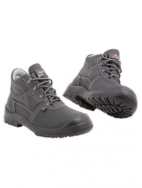 Материал верха: Strong Protection – натуральная прочная кожа черного цвета. Водостойкая. Разрывная нагрузка кожи превышает норму европейского стандарта EN IS********** в 2,1-2,7 раза. Подкладка: подкладка из сетчатого нетканого материала King обеспечивает отличную паропроницаемость. Она отводит избыток тепла от ноги, за счет чего нога не потеет, что предотвращает дискомфорт и размножение бактерий в обуви. Поднос: металлический поднос, который выдерживает силу удара до 200 Дж и нагрузку до 1,5 т. Защищает пальцы ног от внешних повреждений Задник: обувной кожкартон Клапан, боковые вставки: искусственная кожа Стелька: основная из штроботочного материала, комфортная вкладная стелька из кожаного картона Подошва: однослойная ПУ (-15 ° С + 110 ° С) самоочищающийся профиль холодной поверхности, метод крепления - литейный Фурнитура: металлические гладкие петли с антикоррозийным покрытием