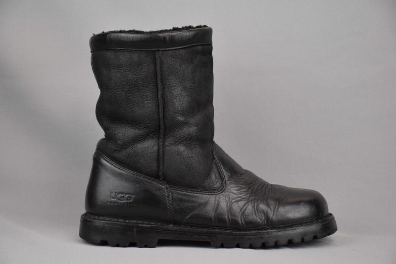 Угги ботинки зимние мужские кожаные UGG Australia Wrangell на натуральном меху цигейцы овчине. Оригинальный! В отличном состоянии. Черные ботинки от известного бренда отлично подходят для снежной, морозной или слякотной погоды. Особенностями являются - водонепроницаемая натуральная кожа и натуральная овечья шерсть / овчина / цигейка. Натуральная мягкая овечья шерсть будет держать Ваши ноги в удобстве и тепле благодаря естественному отводу влаги. Верх - добротная натуральная кожа с водостойкой пропиткой. Внутри - шерстяная подкладка UGGpure / натуральный мех / овчина / цигейка. Сменные шерстяные стельки из натуральной овчины UGGpure®. На заднике патч с логотипом UGG®. Резиновая подошва прочная, износостойкая, которая обеспечивает отличное сцепление как на сухой, так и на мокрой поверхности. С этой подошвой вы хорошо держитесь на любых поверхностях. Настоящая продукция UGG Australia. Отличный выбор на холодный сезон. Ботинки обеспечат абсолютный комфорт для Ваших ног. Очень удобные, теплые, качественные и комфортные. Высота голенища от подошвы 23 см. Длина стельки 29 см. 6f50