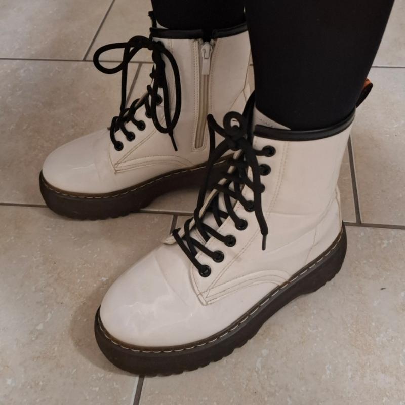 Модные женские сапоги Белого цвета. Размер 36 Кожа, лаковые Аккуратные, в идеальном состоянии.