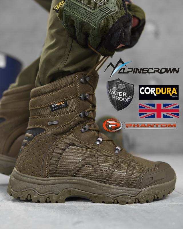 Берцы ALPINE CROWN MILITARY PHANTOM чрезвычайно легкие и надежные, одна из главных особенностей и преимуществ данной обуви – его вес, 1300 грамм пара. Это демисезонная модель. высококачественные материалы, поэтому данную модель можно считать профессиональной военной обувью. Сфера использования - передвижение по местности с разнообразными типами покрытия, в сложных условиях, с грузами и т.д. Данная модель комфортна при длительном использовании, обеспечивает надежную фиксацию голеностопа в правильном положении и защиту ноги в целом. Это многокомпонентная конструкция, где продумана кожная деталь. Данная модель идеально подходит для абсолютно всех военных, спецназначений и представителей охранных и силовых структур. Верх комбинированный, состоит из трех различных материалов. Первый материал – формованный Cordura 1000D, современный, прочный, дышащий материал, который используют почти все известные бренди, второй материал – натуральная замша, высокого качества, прочная и надежная, толщина замши от 1,6-1,8 мм, третий материал – формованный TPU носок – главный функционал – защита передней части стопы. Водонепроницаемая тефлоновая мембрана надежно защищает обувь от проникновения влаги и при этом позволяет отводить лишнюю влагу на внешне. Конструкция самой мембраны является полностью цельной, поэтому способна выдерживать максимальные нагрузки. Сама же, мембрана состоит из полимерных микроволокон содержит более 1,4 миллиарда микроскопических пор на квадратный сантиметр. Эти поры в 20000 раз меньше, чем капли воды, но в 700 раз больше, чем молекулы водяного пара. Поэтому молекулы пара свободно выходят наружу, вместо того, молекулы воды – не попадают в середину обуви. Мембрана находится между внешним материалом и внутренней подкладкой. ПОДОШВА - ПОДВОЙНАЯ ЩИЛЬНОСТЬ EVA + RB Двух компонентная подошва изготовлена из легкой современного материала EVA и эластичной резины, что делает подошву легкой, износостойкой и антистатической. Подошва обладает способностью выдерживать любые нагрузки и подходит к любым погодным условиям. Удачное сочетание материалов обеспечивает амортизационный эффект и комфортное использование обуви на протяжении очень длительного часа. Высокий протектор обеспечивает надежную прививки с любыми видами поверхности, обладающую самоочищающейся структурой/формой. высота протектора 4,7 мм. Данная подошва oil resistant. Эта пластина дополнительно защищает подошву от проколов и других повреждений, и делает обувь действительно безопасной и сверхлежной, обладает силой сопротивления более 1100N. износостойкая, антибактериальная. Хорошо работает вместе с мембраной, помогает создать комфортный микроклимат в середине обуви. TPU ЗАЩИТА ПОДНОСОК + ЗАЩИТА ПЯТЫ Защитный подносок изготовлен из прочного материала TPU, толстость 1,9 мм, обеспечивает достаточно места для пальцевног и гарантирует отсутствие дискомфорта или усталости даже после длительного использования. Имеет эргономичную форму, обеспечивающую защиту от удара 200 Дж. Главная функция – защита пальцевног, и передней части стопы. Защитная пластина защищает заднюю часть стопы, также помогает удерживать голеностоп в правильном положении. Эта деталь также изготовлена из прочного, а главное, легкого материала TPU, толстость 1,9 мм. стелька, обеспечивающая комфортное использование обуви, имеет сотову