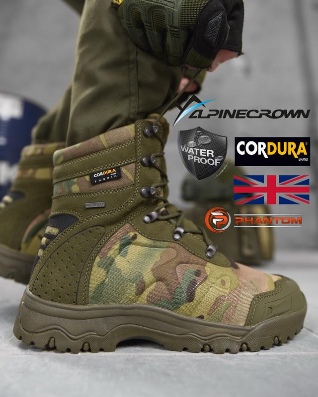 Берцы ALPINE CROWN MILITARY PHANTOM чрезвычайно легкие и надежные, одна из главных особенностей и преимуществ данной обуви – его вес, 1300 грамм пара. Это демисезонная модель. высококачественные материалы, поэтому данную модель можно считать профессиональной военной обувью. Сфера использования - передвижение по местности с разнообразными типами покрытия, в сложных условиях, с грузами и т.д. Данная модель комфортна при длительном использовании, обеспечивает надежную фиксацию голеностопа в правильном положении и защиту ноги в целом. Это многокомпонентная конструкция, где продумана кожная деталь. Данная модель идеально подходит для абсолютно всех военных, спецназначений и представителей охранных и силовых структур. Верх комбинированный, состоит из трех различных материалов. Первый материал – формованный Cordura 1000D, современный, прочный, дышащий материал, который используют почти все известные бренди, второй материал – натуральная замша, высокого качества, прочная и надежная, толщина замши от 1,6-1,8 мм, третий материал – формованный TPU носок – главный функционал – защита передней части стопы. Водонепроницаемая тефлоновая мембрана надежно защищает обувь от проникновения влаги и при этом позволяет отводить лишнюю влагу на внешне. Конструкция самой мембраны является полностью цельной, поэтому способна выдерживать максимальные нагрузки. Сама же, мембрана состоит из полимерных микроволокон содержит более 1,4 миллиарда микроскопических пор на квадратный сантиметр. Эти поры в 20000 раз меньше, чем капли воды, но в 700 раз больше, чем молекулы водяного пара. Поэтому молекулы пара свободно выходят наружу, вместо того, молекулы воды – не попадают в середину обуви. Мембрана находится между внешним материалом и внутренней подкладкой. ПОДОШВА - ПОДВОЙНАЯ ЩИЛЬНОСТЬ EVA + RB Двух компонентная подошва изготовлена из легкой современного материала EVA и эластичной резины, что делает подошву легкой, износостойкой и антистатической. Подошва обладает способностью выдерживать любые нагрузки и подходит к любым погодным условиям. Удачное сочетание материалов обеспечивает амортизационный эффект и комфортное использование обуви на протяжении очень длительного часа. Высокий протектор обеспечивает надежную прививки с любыми видами поверхности, обладающую самоочищающейся структурой/формой. Высота протектора 4,7 мм. Данная подошва oil resistant. Эта пластина дополнительно защищает подошву от проколов и других повреждений, и делает обувь действительно безопасной и сверхлежной, обладает силой сопротивления более 1100N. износостойкая, антибактериальная. Хорошо работает вместе с мембраной, помогает создать комфортный микроклимат в середине обуви. TPU ЗАЩИТА ПОДНОСОК + ЗАЩИТА ПЯТЫ Защитный подносок изготовлен из прочного материала TPU, толстость 1,9 мм, обеспечивает достаточно места для пальцевног и гарантирует отсутствие дискомфорта или усталости даже после длительного использования. Имеет эргономичную форму, обеспечивающую защиту от удара 200 Дж. Главная функция – защита пальцевног, и передней части стопы. Защитная пластина защищает заднюю часть стопы, также помогает удерживать голеностоп в правильном положении. Эта деталь также изготовлена из прочного, а главное, легкого материала TPU, толстость 1,9 мм. стелька, обеспечивающая комфортное использование обуви, имеет сотову