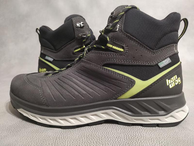НОВЫЕ мужские ботинки Hanwag Blueridge Low Es. Производные ботинки Hanwag Blueridge Low ES, разработанные для исключительной долговечности и комфорта во время похода, имеют прочный, гибкий верх из кожи Perwanger с водонепроницаемой полиуретановой мембраной Eco-Shell и подошву Terragrip Hike Pro с выступами для сцепление на любом участке дороги. Особенности: -Мицкий верх из кожи и замши Perwanger с текстильными вставками. -Трислойная водонепроницаемая полиуретановая мембрана Eco-Shell. -Дышащая сетчатая подкладка. -Язычок 3D-BreathFit компенсирует естественную анатомическую асимметрию стопы. - Мягкая межподошва с 3D-структурой для дополнительной устойчивости. -Подошва Terragrip Hike Pro с выступами толщиной 4 мм для более широкого контакта с поверхностью. Производитель: Сербия. Размеры в наличии: EUR 44 / US 10,5 / UK 9,5 / стелька 29 см. Отправка по Украине по подписке 200 грн. Доставка за счет покупателя.