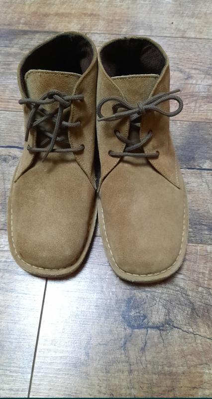 Натуральные ботинки песочного цвета, материал замша, подошва каучук. Размер по стельке 27 см.