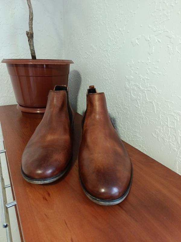 Челси от Bugatti, размер 46, стелька 30 см анатомическая, кожа идеальная, увлажненная, цвет коньячный, ботинки не были в носке, это видно по стельке и подошве, есть небольшие царапины, сделанные уже в магазине. На ношение не влияет. Челси высота борта 11 см замер от ранта, не высокие, ширина в районе плюсны 11 см.