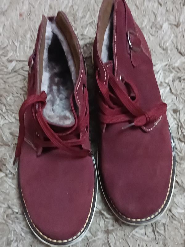 Длина стельки 26.5 см. Темно бордового цвета. Может носить и женщина. Внутри мех. На шнуровках.