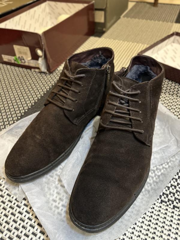 Мужские замшевые ботинки, мех внутри носились, недостатки на фото трещинки не мешают носке, не протекают длина стельки 29 см