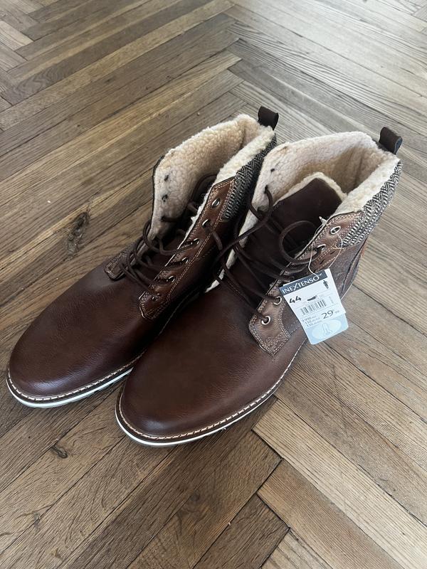 Стильні зимові черевики Inextenso (розмір 44). Тепла хутряна підкладка, зручна анатомічна устілка та рельєфна підошва, що не ковзає. Підійдуть для холодної погоди та щоденного носіння. Нові, з біркою.