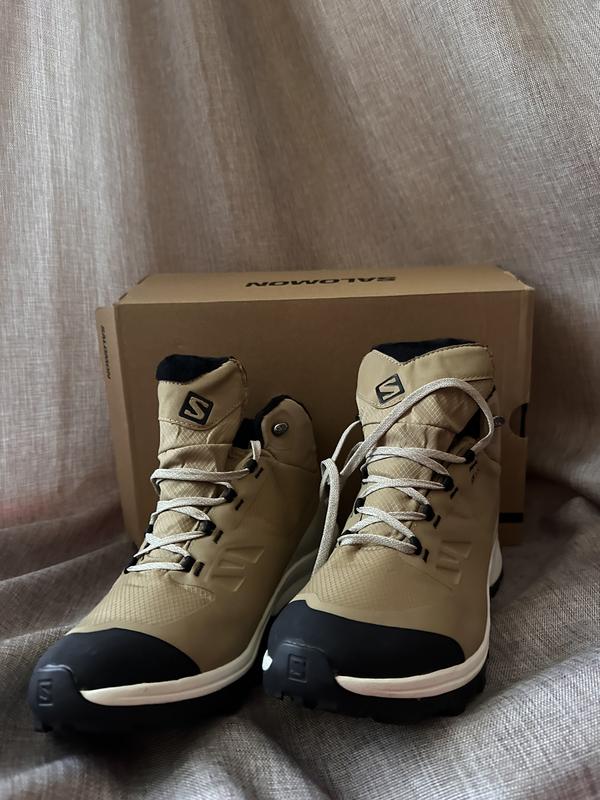 Привлеченные бежево-черные трекинговые ботинки waterproof от salomon outsnap на зимний период. Обувались один сезон, стали заузкие.