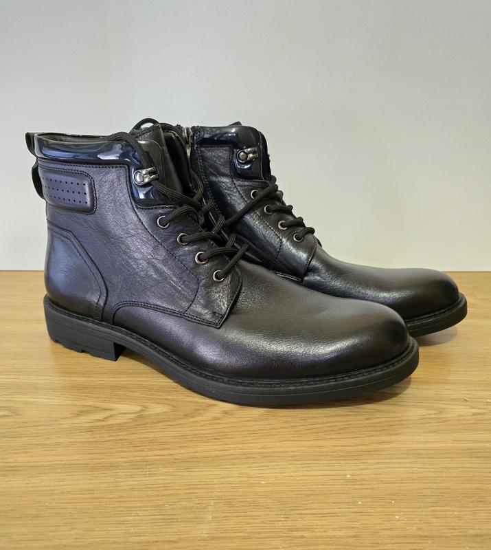Качество 🔥🔥🔥 Эти темно-синие мужские ботильоны изготовлены из высококачественной натуральной кожи и рекомендуются мужчинам, которые ценят комфорт и стиль. Шнуровка и быстроразъемные молнии обеспечивают идеальную посадку и легкость надевания и съемки. Удобные, вневременные и прочные, эти ботильоны станут надежным дополнением к осенне-зимнему образу. Внутренняя часть обуви обработана текстильным материалом, который обеспечивает ощущение тепла в холодные дни. В наличии 43, 44, 45 размер ‼️Обувь большемерит Также в наличии есть другие модели данной фирмы