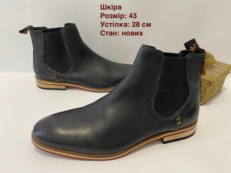Шикарні шкіряні чоловічі черевики Челсі 43 р. Устілка 28 см на 44 р. Стан нових. Колір темно синій.