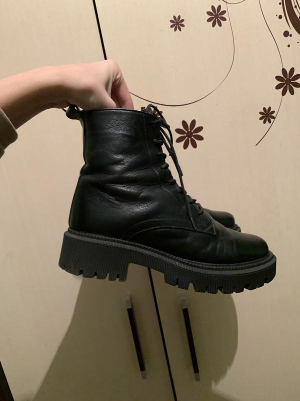 В дуже хорошому та гарному стані, дуже зручні та теплі, середина натуральна вовна, продаю ббо вже трішки набридли) устілка 23,5-24 , Шкіра хороша легко чиститься тріщин на шкірі не має бо носились акуратно!