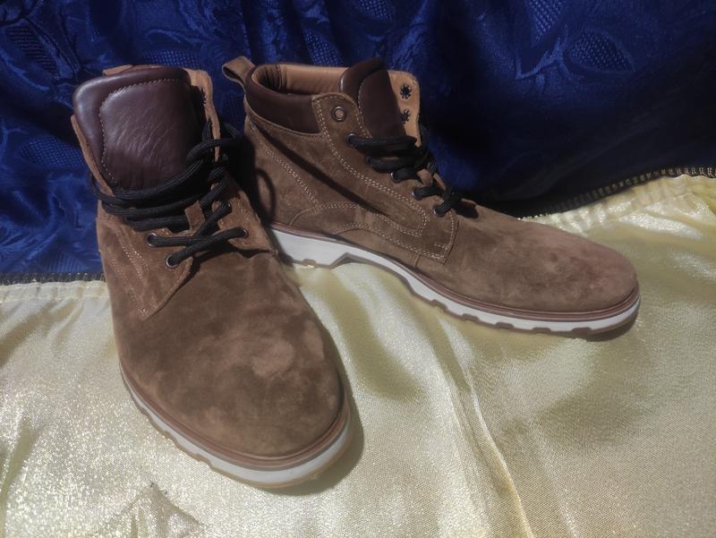 мужские замшевые ботиночки известного производителя, обобщительная длина стельки 29см,ширина 9.5см, если заменить проводить внутри то длина стельки 28см, снадам дополнительные фото и информацию при необходимости,размер 8.5