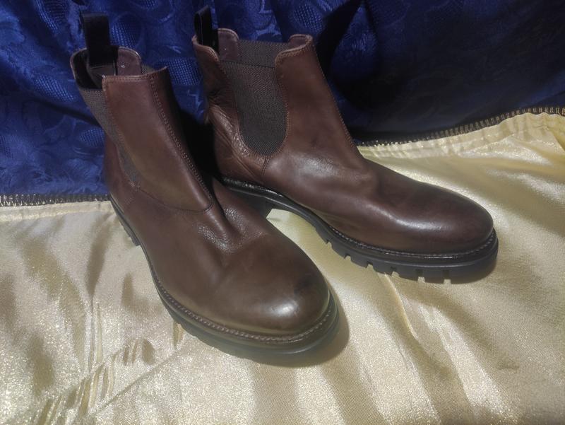 мужская кожаная обувь известного производителя, длина стельки измерена внутри рулеткой составляет 29см,на правом ботинке видно как следы клея,припускаю что возможно продавались ремонтные работы,фото 10, подошва,кожа,все целое,надам дополнительные фото и дополнительные фото и информацию при необходимости,размер 9