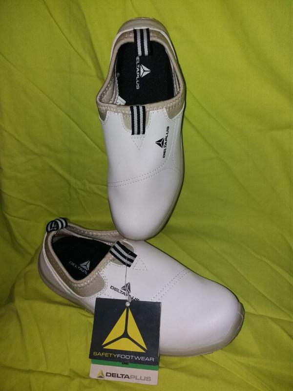 Продам Туфли рабочие DELTA PLUS MIAMI S2 SRC White Размер 37 Длина стельки 24,4см. Новые. Описание Кроссовки Delta Plus MIAMI S2 белые – удобная защитная спецобувь, которая обеспечивает комфорт в носке и применяется для работы в закрытых помещениях. Предназначена для защиты от влаги, общих загрязнений, механических воздействий, обладает антистатическими свойствами. Санитарный белый цвет рабочих туфель и дизайн унисекс позволяет использовать данный вид защитной обуви как для мужчин, так и для женщин, работающих в различных областях: фармацевтическая, пищевая, молочная промышленность. Может использоваться для фельдшеров и персонала медицинских учреждений, ветеринарных клиник, лабораторий и других предприятий. Характеристики Верх защитных туфель комбинированный, водонепроницаемый, изготавливается из микрофибры и полиэстера. Внутри формованная (перфорированная) съемная стелька из полиэстера на EVA. Для защиты пальцев ног, носок модели оснащен металлическим подноском (до 200 Дж). Легкие и комфортные, кроссовки обеспечивают хорошую вентиляцию и гигроскопичность для сохранения сухости на протяжении всей рабочей смены. Несмотря на белый цвет, туфли практичны, устойчивы к загрязнениям и спокойно выдерживают стирку при 30°С. Подошва: Однослойная, изготовленная из полиуретана, очень гибкая, повторяет форму стопы, оснащена амортизатором, что гарантирует комфортность и удобство при ходьбе, снижает усталость ног. Крепится к верху литейным методом, что обеспечивает прочность и полную герметичность изделия. Антискользящая (тест SRC) с рифленым рисунком, препятствующим скольжению, и обеспечивающий хорошую устойчивость и сцепление на мокрых/слизких кафельных и стальных покрытиях. Устойчива к агрессивному воздействию углеводородов.