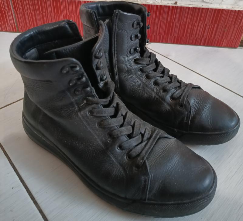 Хороші якісні утеплені черевики.. Дизайн підійде до будь-якого стилю.Взуття Ікос відоме своєю якістю.Розмір 42. ....Чорна м'яка зерниста шкіра.Утеплення якісне - вовняна байка,щільна.Дуже легенькі та зручні.Підошва не ковзка.Носилися мало.Продаю,бо сину замалі.Підійдуть на осінь,весну,та не сильно холодну зиму.