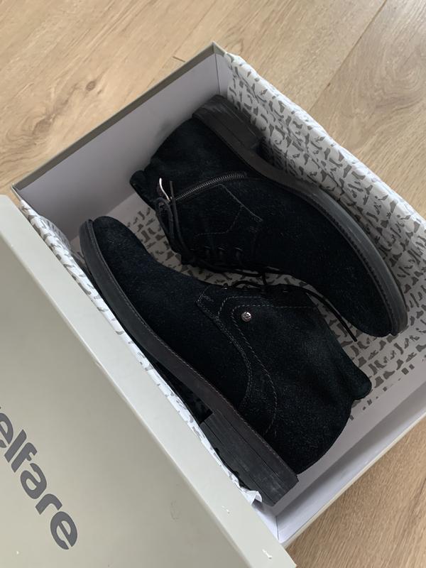 Черевики чоловічі Welfare, р.40 вказано на коробці, йдуть на 41-42( 27,5 см) Матеріал верху натуральна шкіра (замша) Матеріал підкладки- шкіра, утеплені флісом, застібка змійка збоку. В ідеальному стані, без недоліків і дефектів