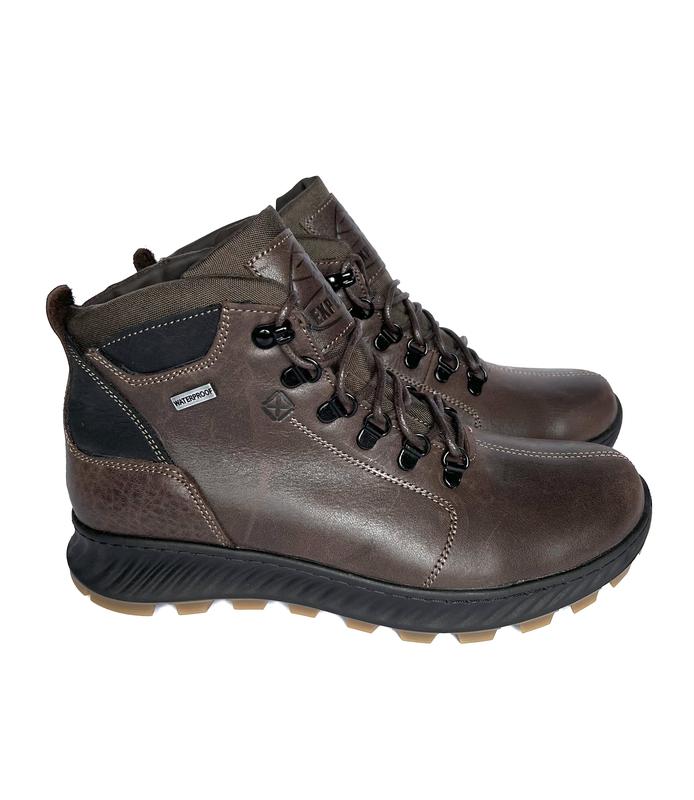 Зимові чоловічі черевики ботинки коричневі шкіряні на натуральному хутрі botus