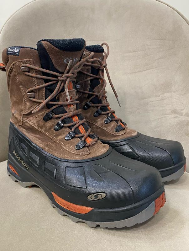 Зимові черевики Salomon з утеплювачем Thinsulate Розмір 44.5 Стан -чудовий! Верх (основа): Гумовий захист передньої і задньої частини, зони стопи. Додатковий гумовий захист ахіллової зони. Вставка в каблук зі спіненого пластику. Вшитий язичок. Фіксуючі петлі шнурівки. . Підкладка: суцільна конструкція з вбудованим язичком і водонепроникною мембраною Waterproof. Утеплювач Aspen Aerogels ™. Мех. Синтетичне хутро. Підошва: Зимовий протектор Winter Contagrip®. Проміжна підошва з матеріалу EVA. Зимові устілки з матеріалу EVA мають відмінні теплоізоляційні властивості