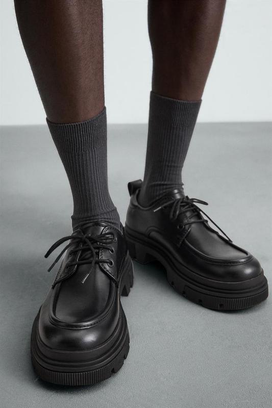 Елегантні туфлі-дербі з рельєфним швом спереду. Петелька для полегшення взування ззаду. Круглий носок. Важка підошва з неправильним дизайном. ЧОРНИЙ | 2422/620/800